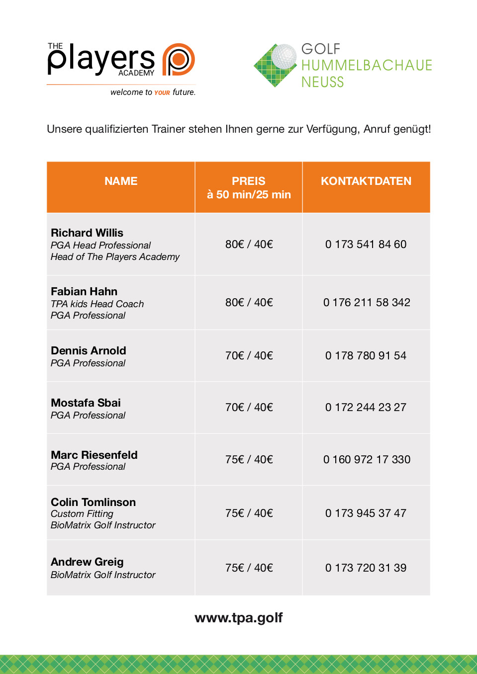 Tel.: 0173 - 72 03 139 E-Mail: info@andrewgreig-golfcoaching.de;